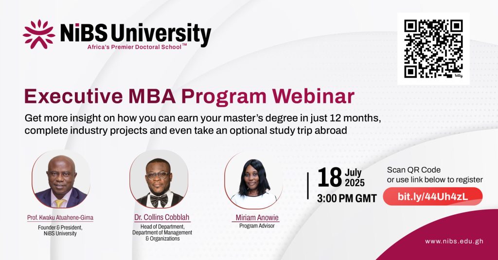 At NiBS University we are on a mission to mould experienced executives and other professionals into practitioner-scholars with applied management research skills to discover, lead, and share new knowledge and practices to nourish organizations from Ghana to Africa and beyond.