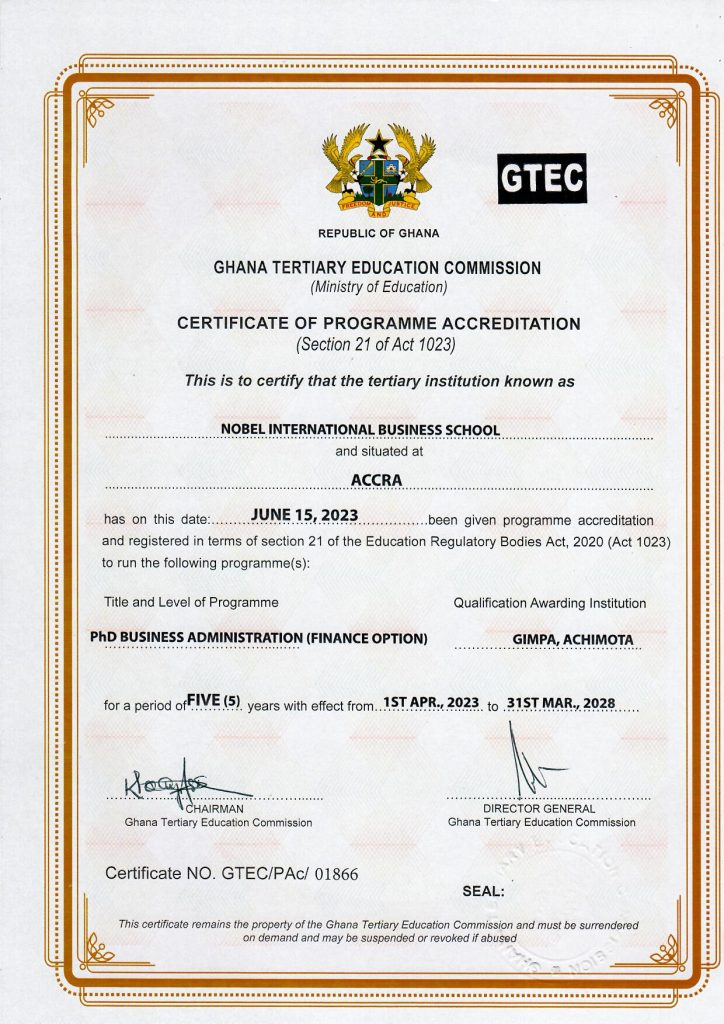 | PhD Business Administration (Finance Option) | 01-04-2023 | 5 | 31-03-2028 |