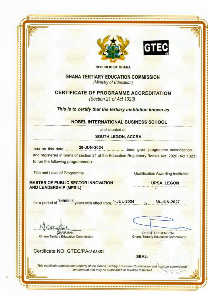 | Master of Public Sector Innovation and Leadership (MPSIL) | 01-07-2024 | 3 | 30-06-2027 |
