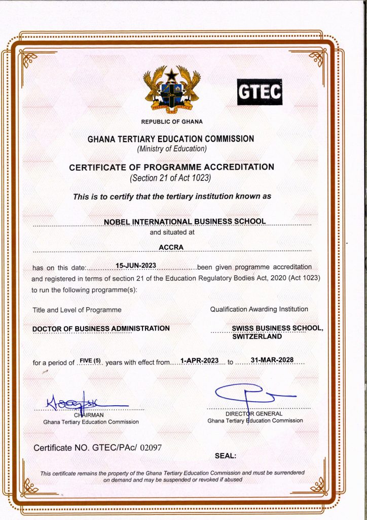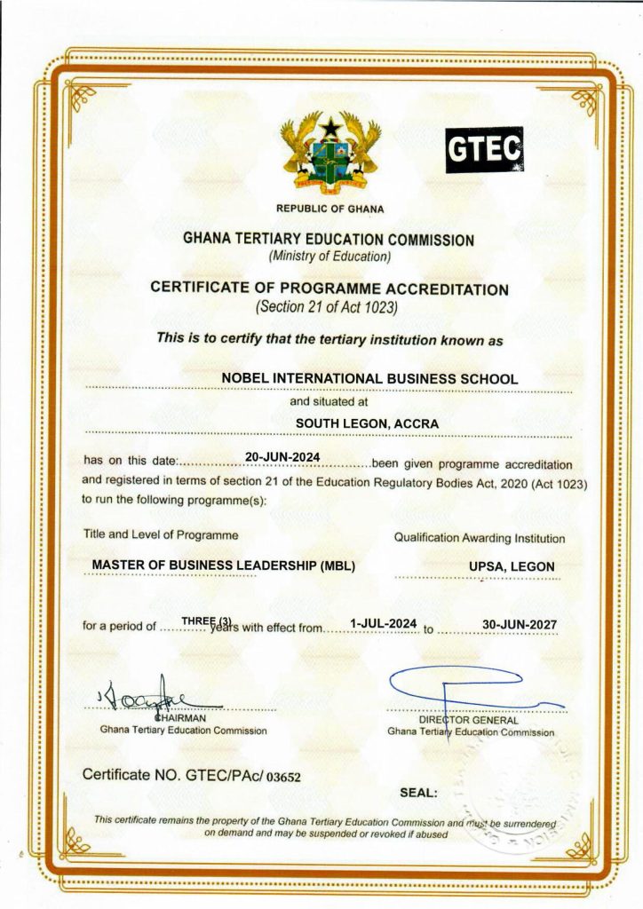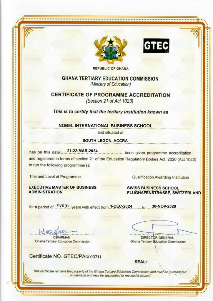 | Executive Master of Business Administration | 01-12-2024 | 5 | 30-11-2029 |