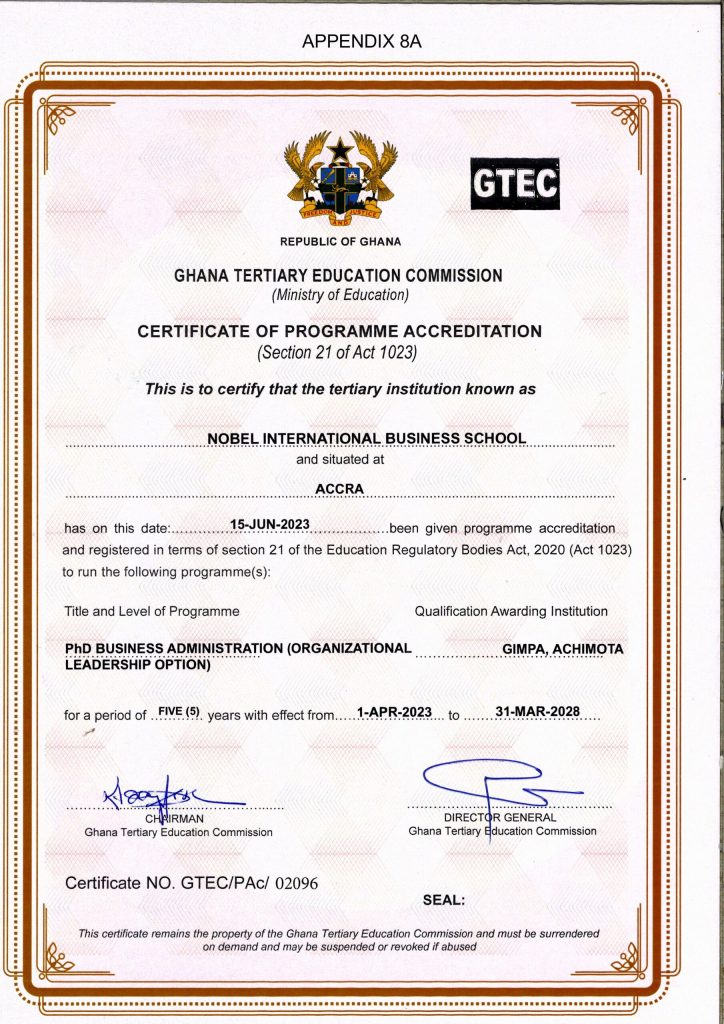 | Â PhD Business Administration (Organizational Leadership Option) | 01-04-2023 | 5 | 31-03-2028 |